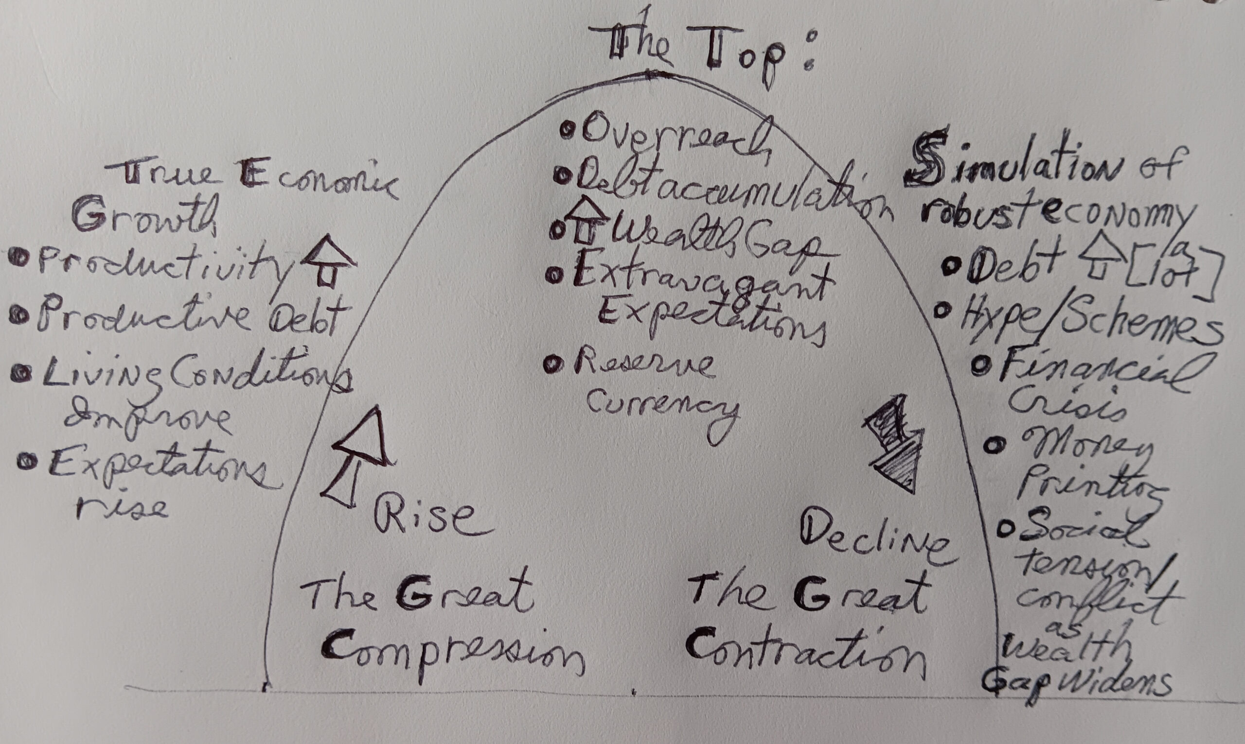 The above diagram is an oversimplified conceptual map that takes off from Dalio in what he terms The Big Cycle. In the Rise…